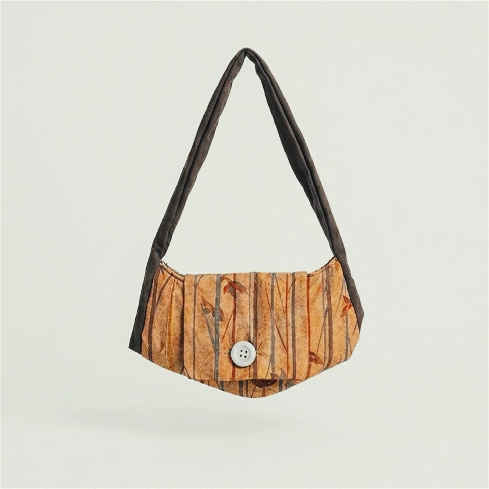 (この作品は着物から生まれました。伝統の制約を剥ぎ取り、脱構築によって再誕した一点です。)